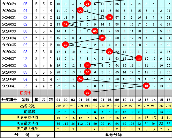 蓝球号码分析:上期蓝球为13,开出1路号码,蓝球最近10期012路比为2:3:5,最近30期012路比为6:13:11,最近100期012路比为25:46:29,本期蓝球看好2路号码,四码蓝球参考02、05、08、11。